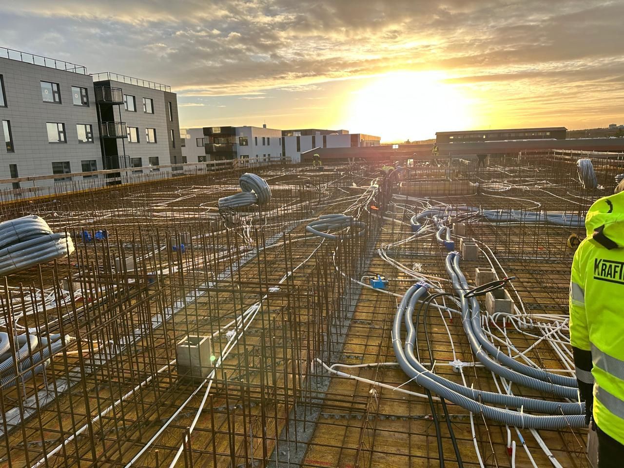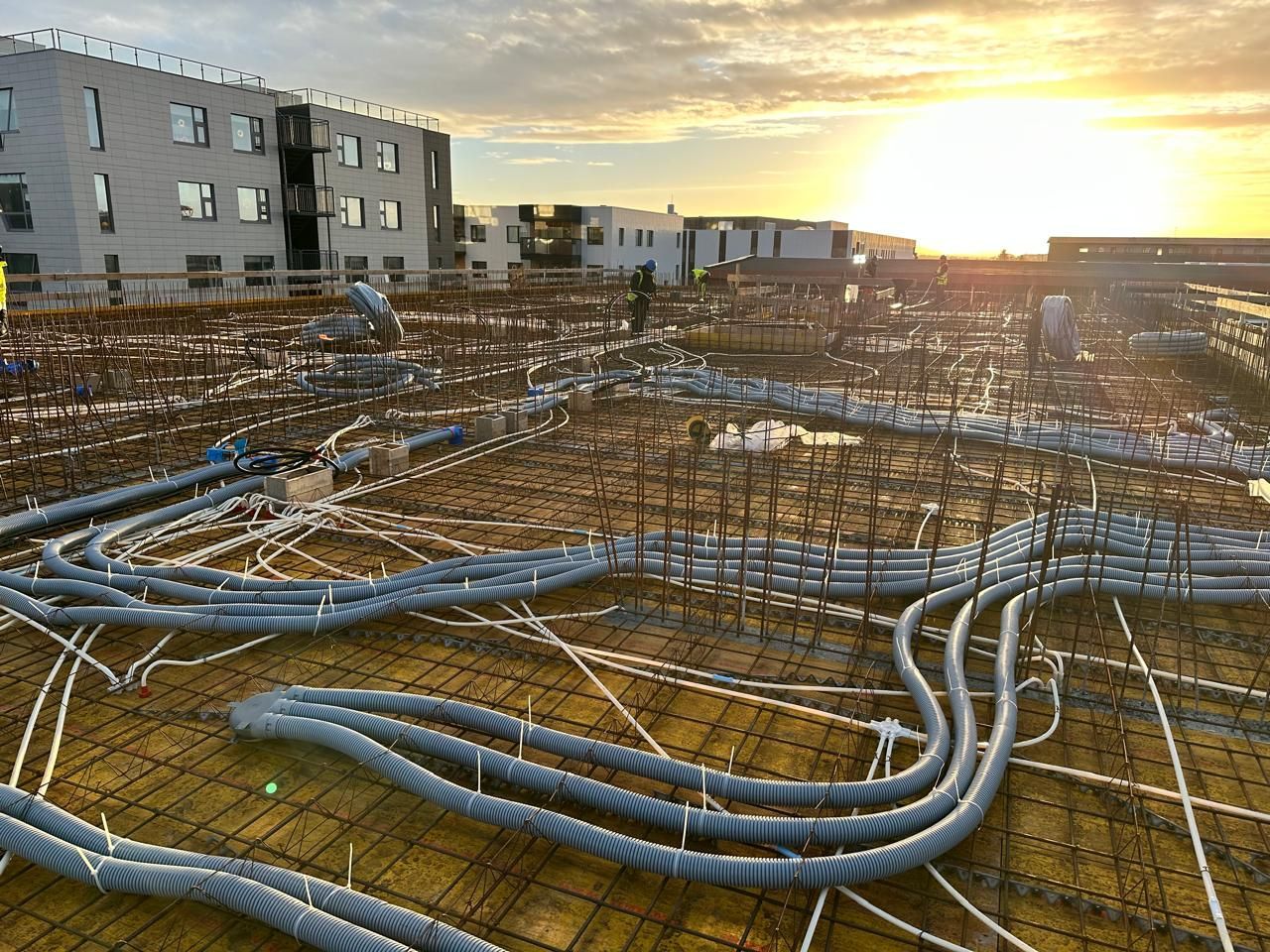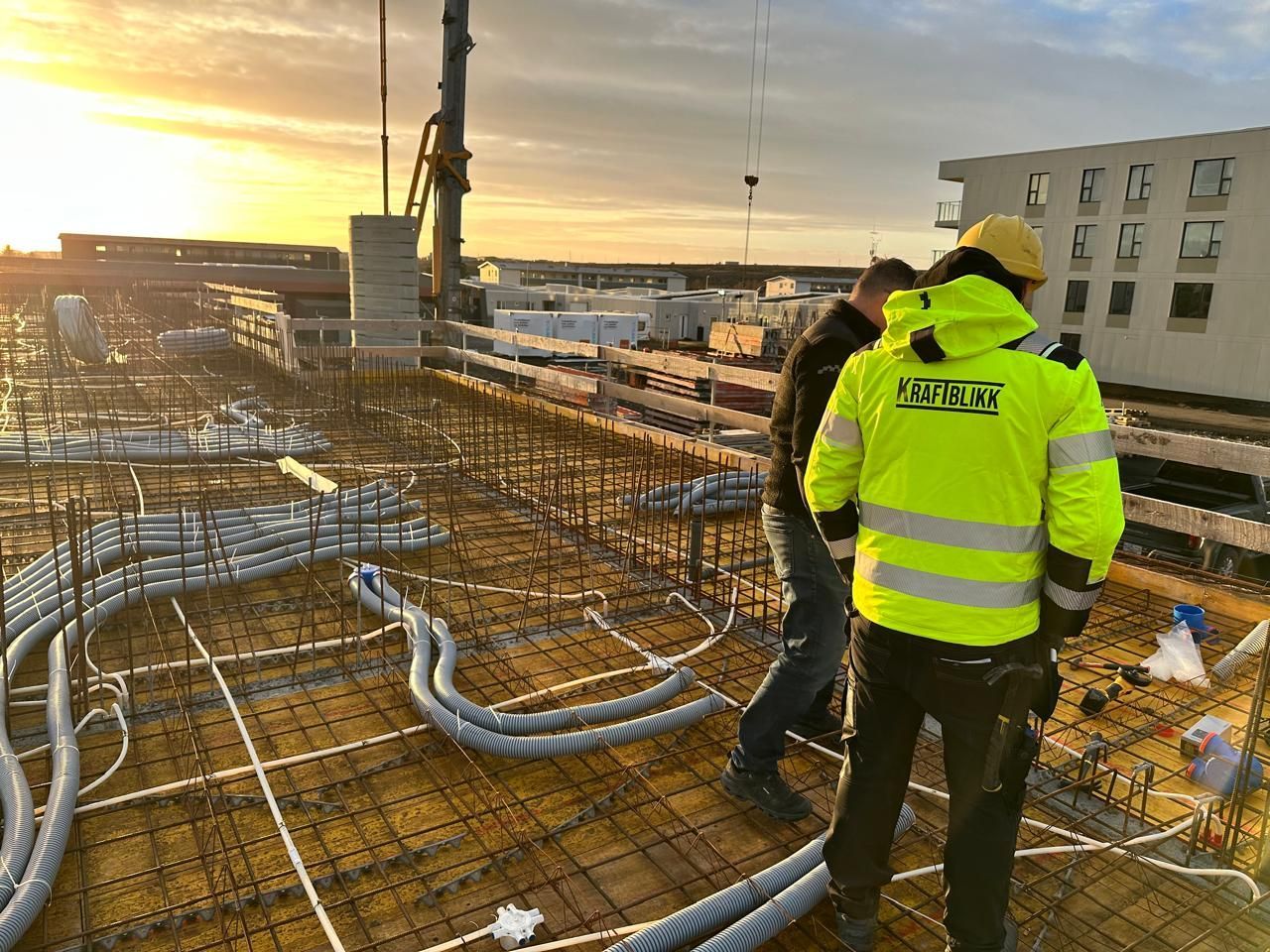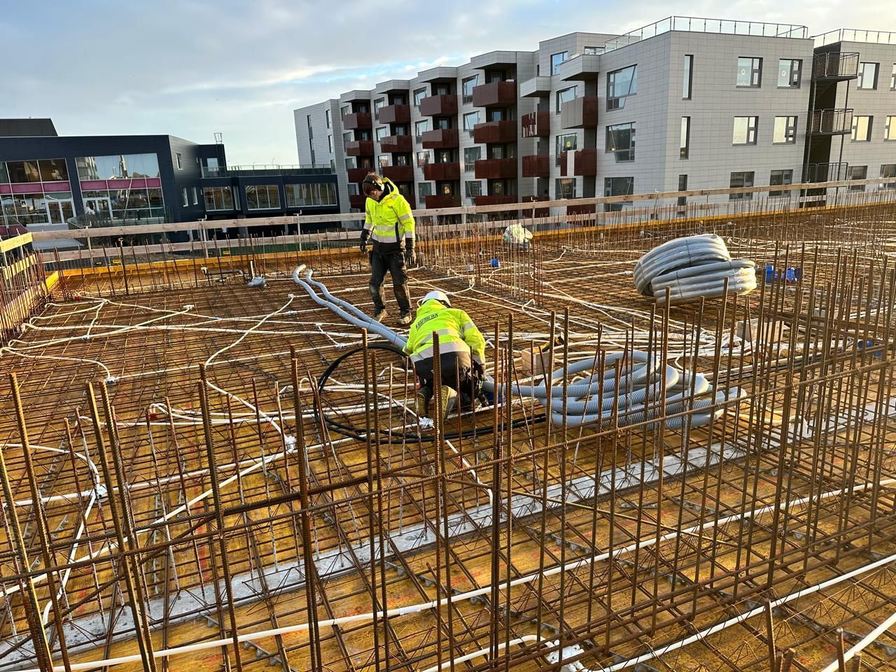 Verið að setja niður barka og sjónpípur sem síðan er steypt yfir.